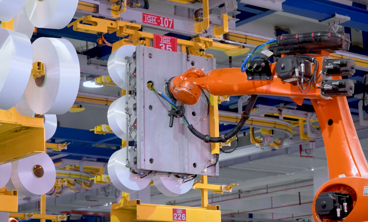 POY單軸旋轉(zhuǎn)緊湊落筒機器人